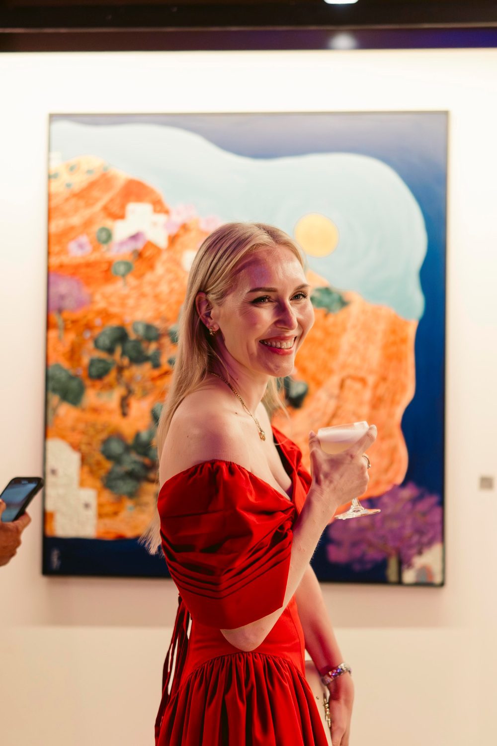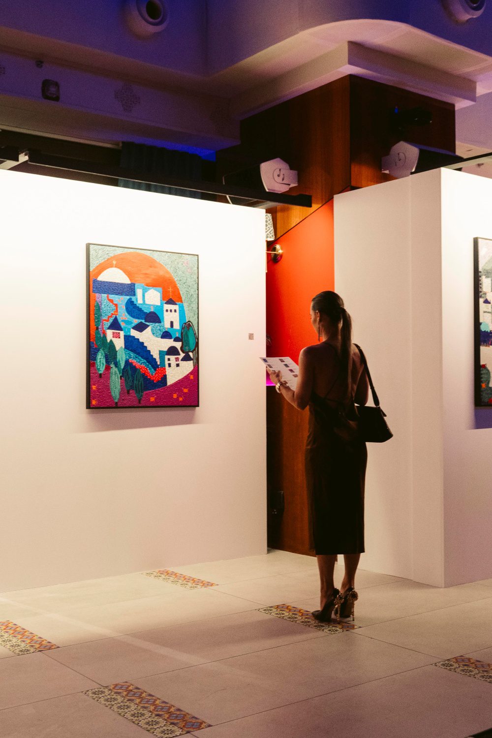 The gallery hosts monthly rotating exhibitions featuring works by world-renowned artists, curated to run for the full duration of each month. Guests dine alongside museum-level artwork, making art a permanent and intentional part of the restaurant.